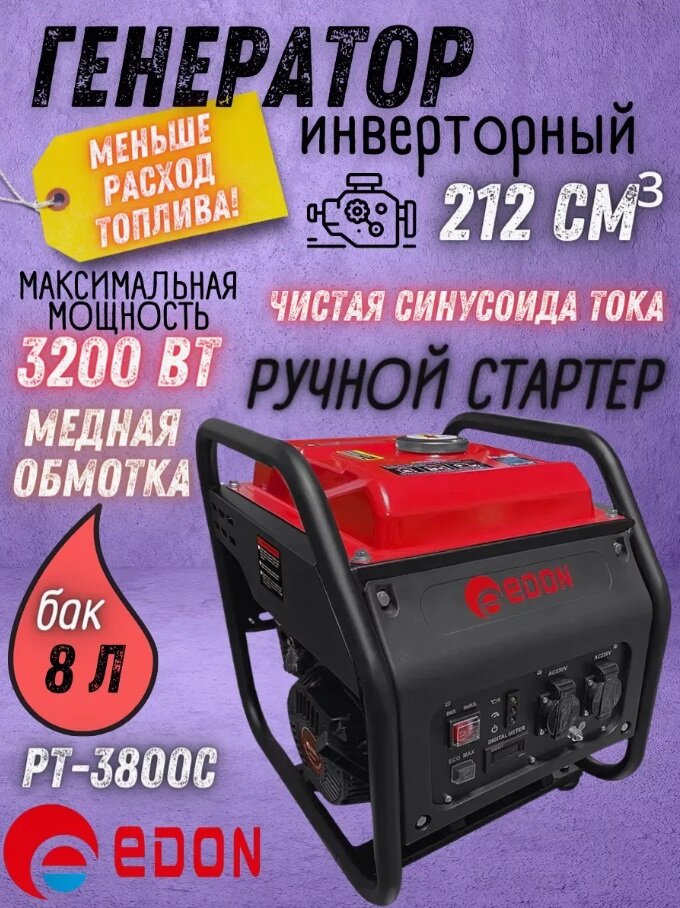 Генератор бензиновый инверторный 3 кВт PT-3800C EDON (212 см3, 2800 об/мин, 3200 Вт) интересное: