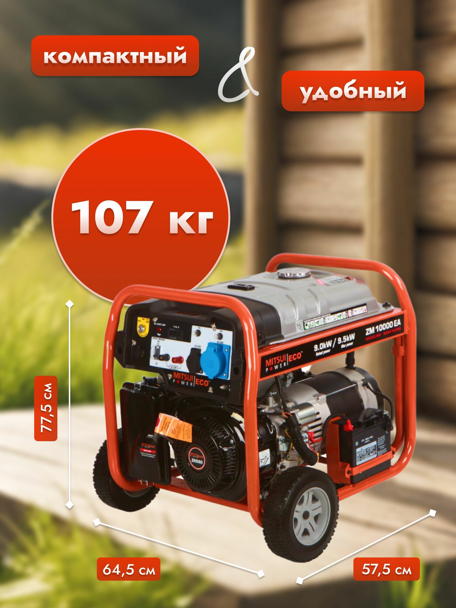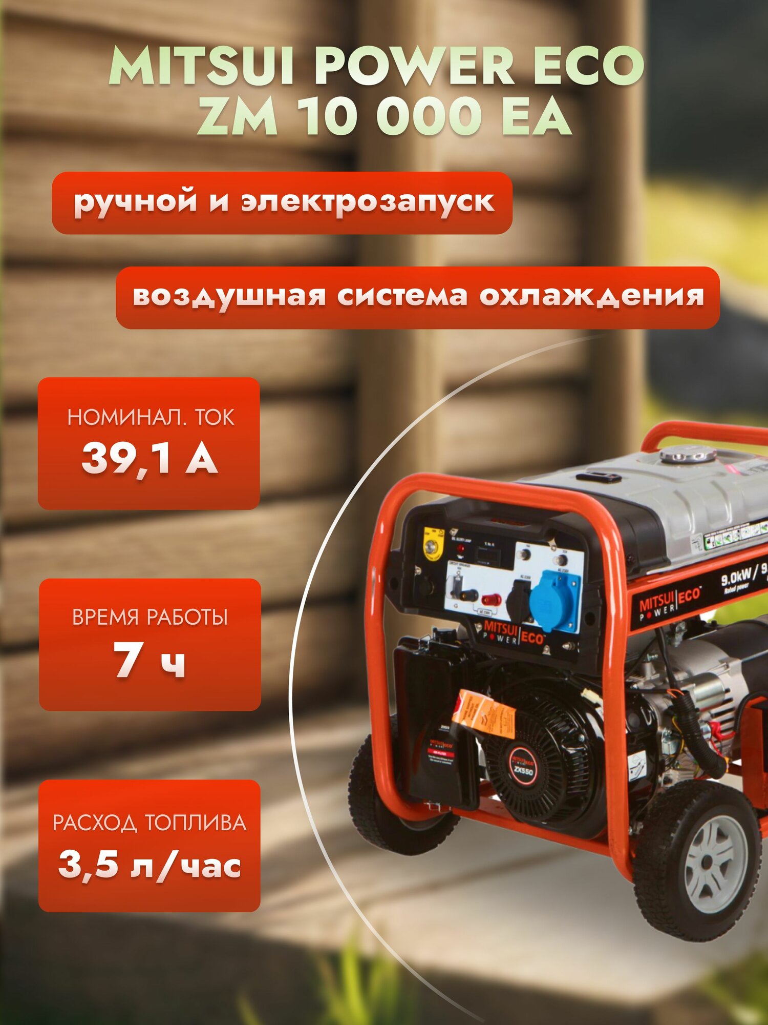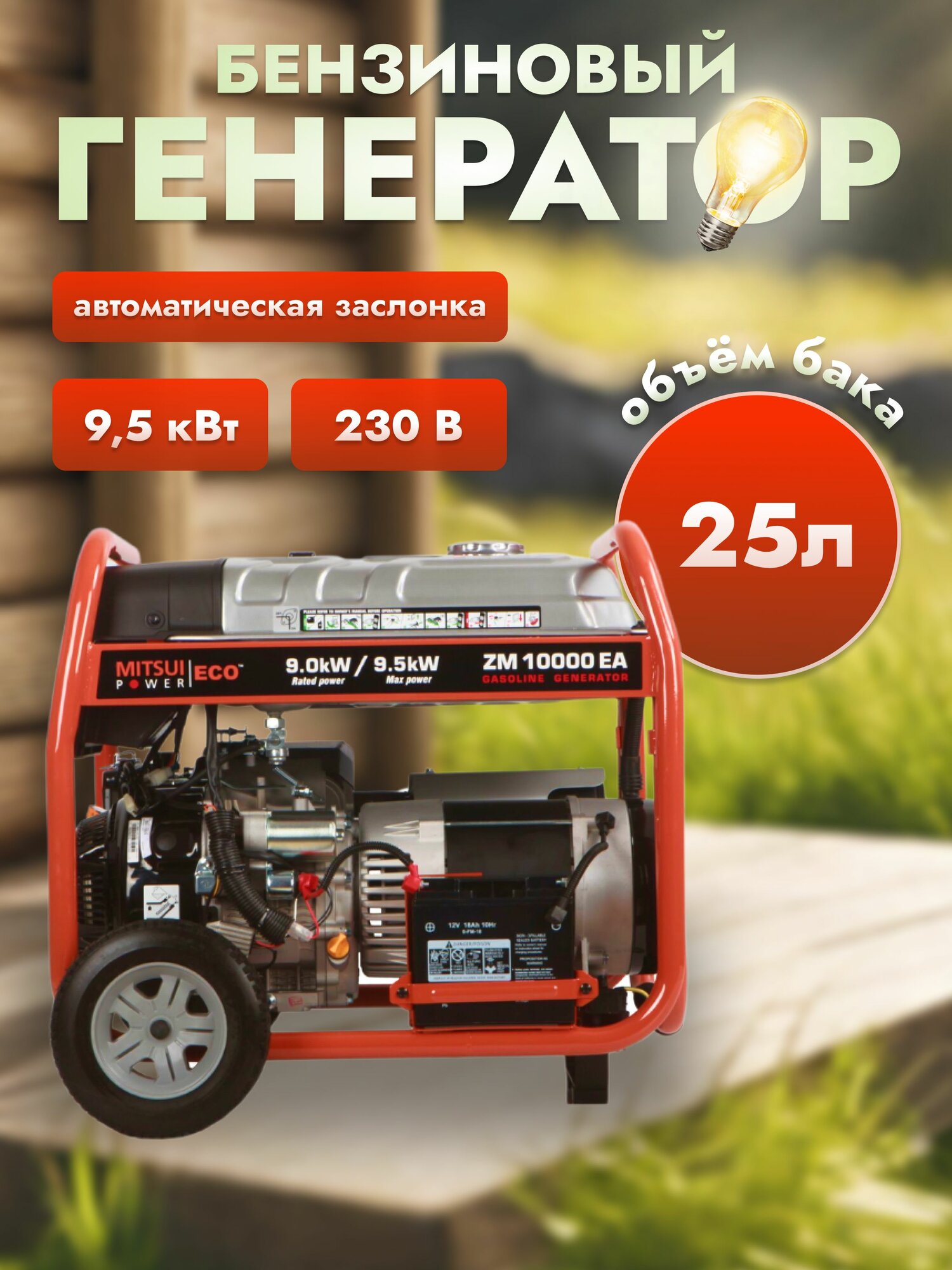 Генератор Mitsui Power ZM 10000EA, мощность 9500Вт, однофазный интересное: