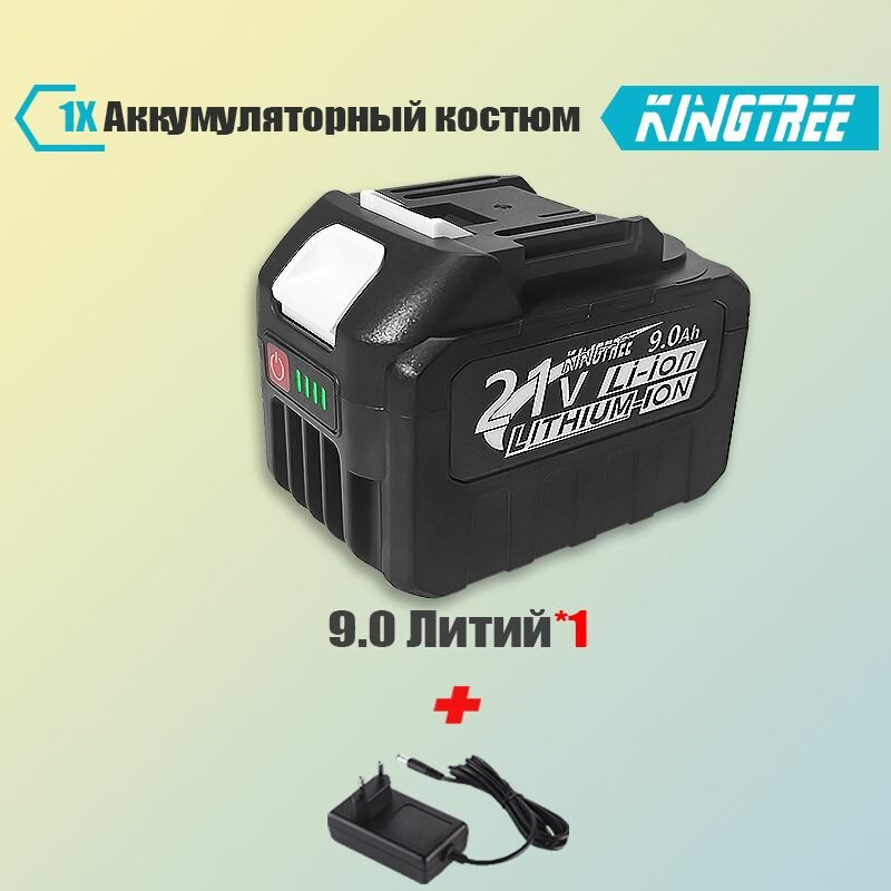 Kingtree 9.0 21V батарея для наружного электроинструмента & зарядное устройство.(1 АКБ 9.0Ач, Зарядное устройство) интересное: