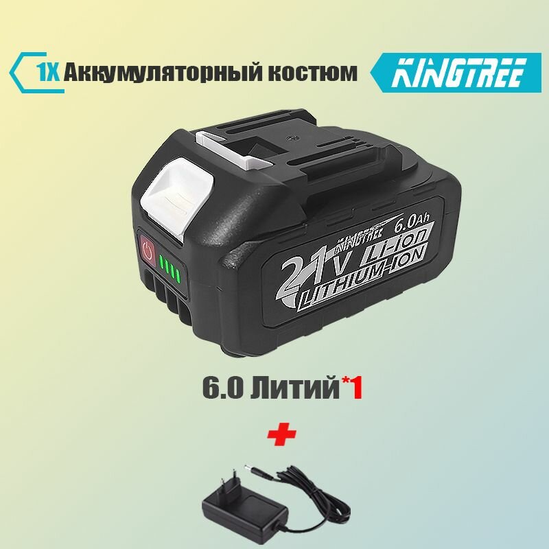 Kingtree 6.0 21V батарея для наружного электроинструмента & зарядное устройство.(1 АКБ 6.0Ач, Зарядное устройство) интересное: