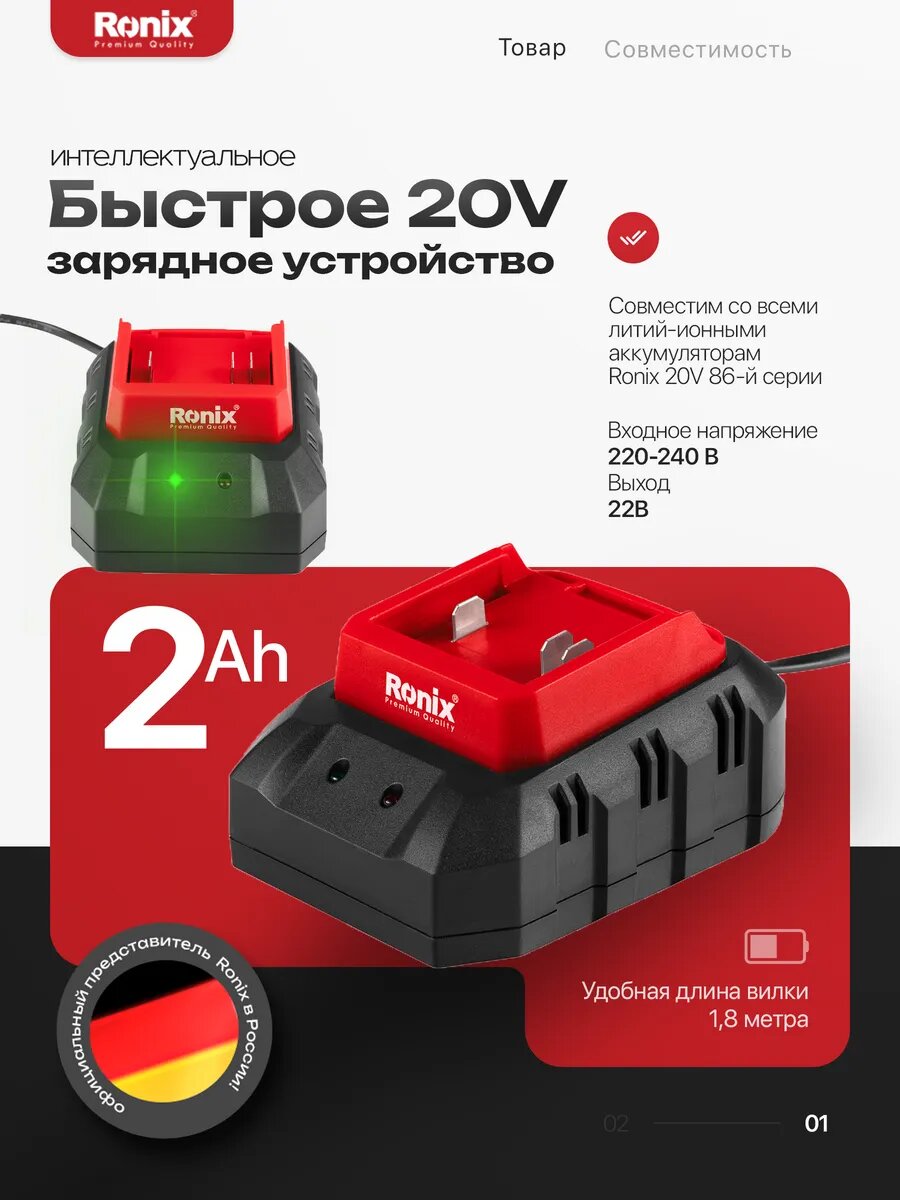 Зарядное устройство для аккумулятора Ronix 20V электроинструмента 2 Ah интересное: