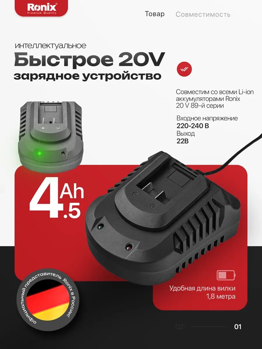 Зарядное устройство для электроинструмента Ronix 4.5 Ah быстрое интересное:
