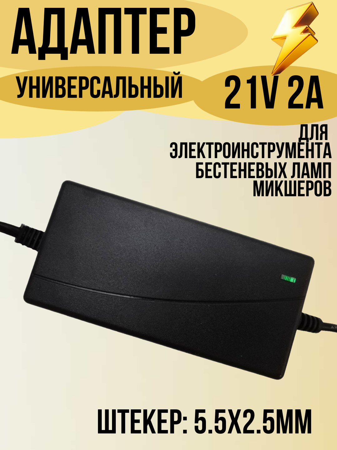 Зарядное устройство для электроинструмента , бестеневых ламп, микшеров 21В, 2А, 5,5х2,5 интересное: