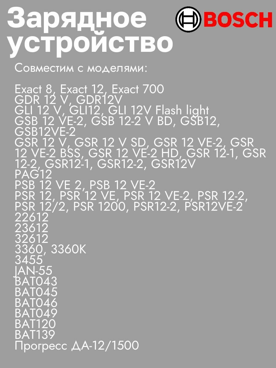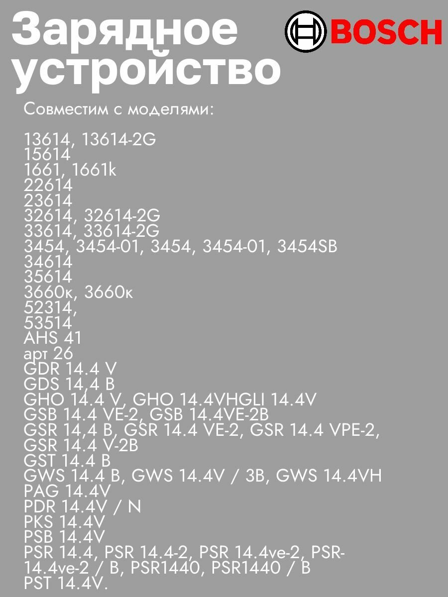 Зарядное устройство для Bosch 7.2-18V 1.5A Ni-cd интересное: