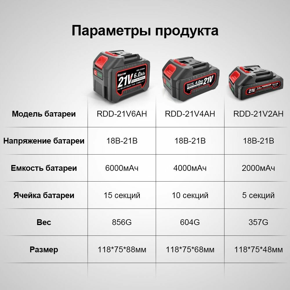 Ниже Вы можете прочитать отзывы на Литиевые батареи для электрических инструментов 21V - 6000 мА аккумуляторы высокой емкости для пастбищ энергосберегающие, ознакомится с подробными характеристиками, посмотреть интересные обзоры и фотографии на Литиевые батареи для электрических инструментов 21V - 6000 мА аккумуляторы высокой емкости для пастбищ энергосберегающие.