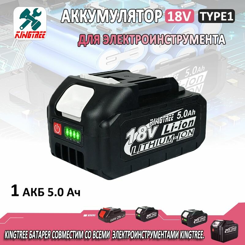 Kingtree литиевый аккумулятор большой емкости, для наружных электрических инструментов (18V 5.0Ah, без зарядки) интересное: