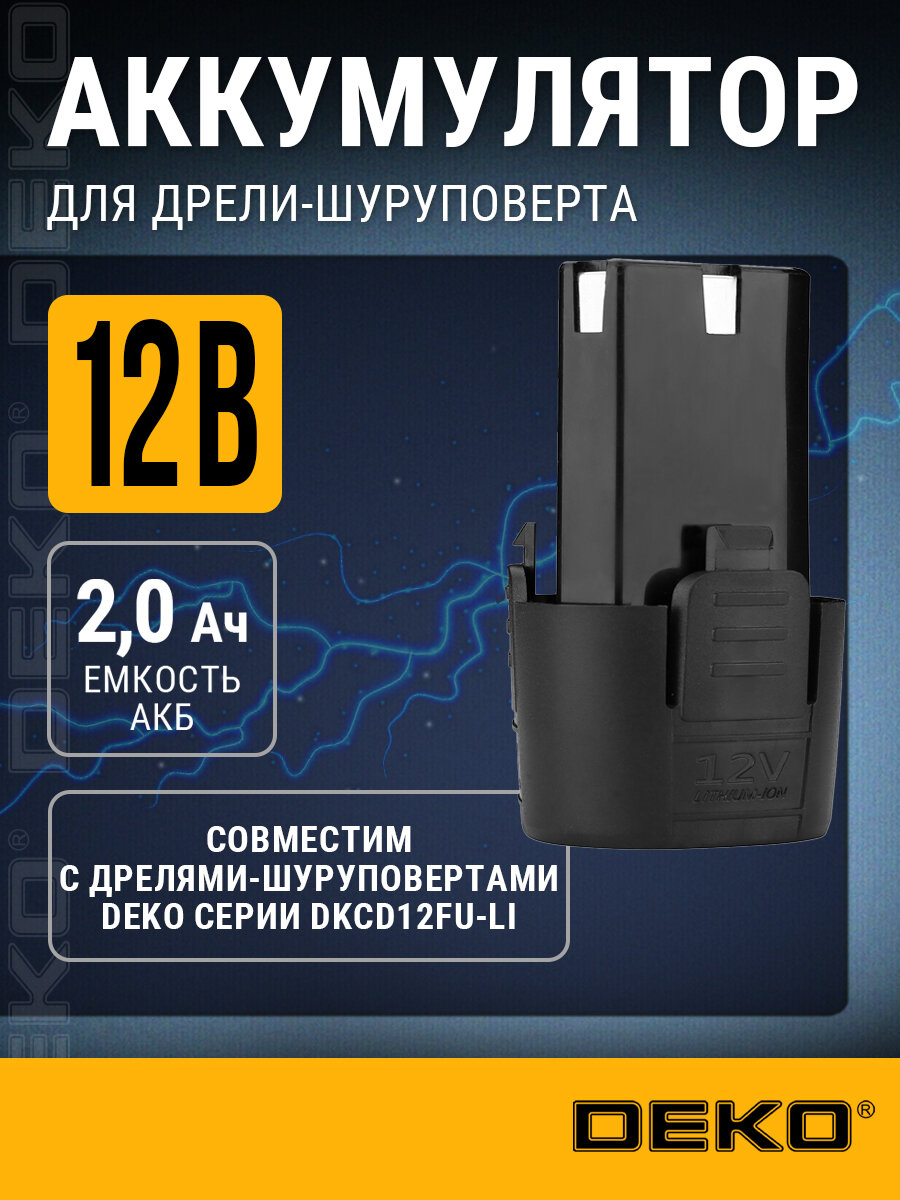 Купить Литий-ионный аккумулятор DEKO для дрели-шуруповерта DKCD12FU-Li, 12В, 2 А*ч