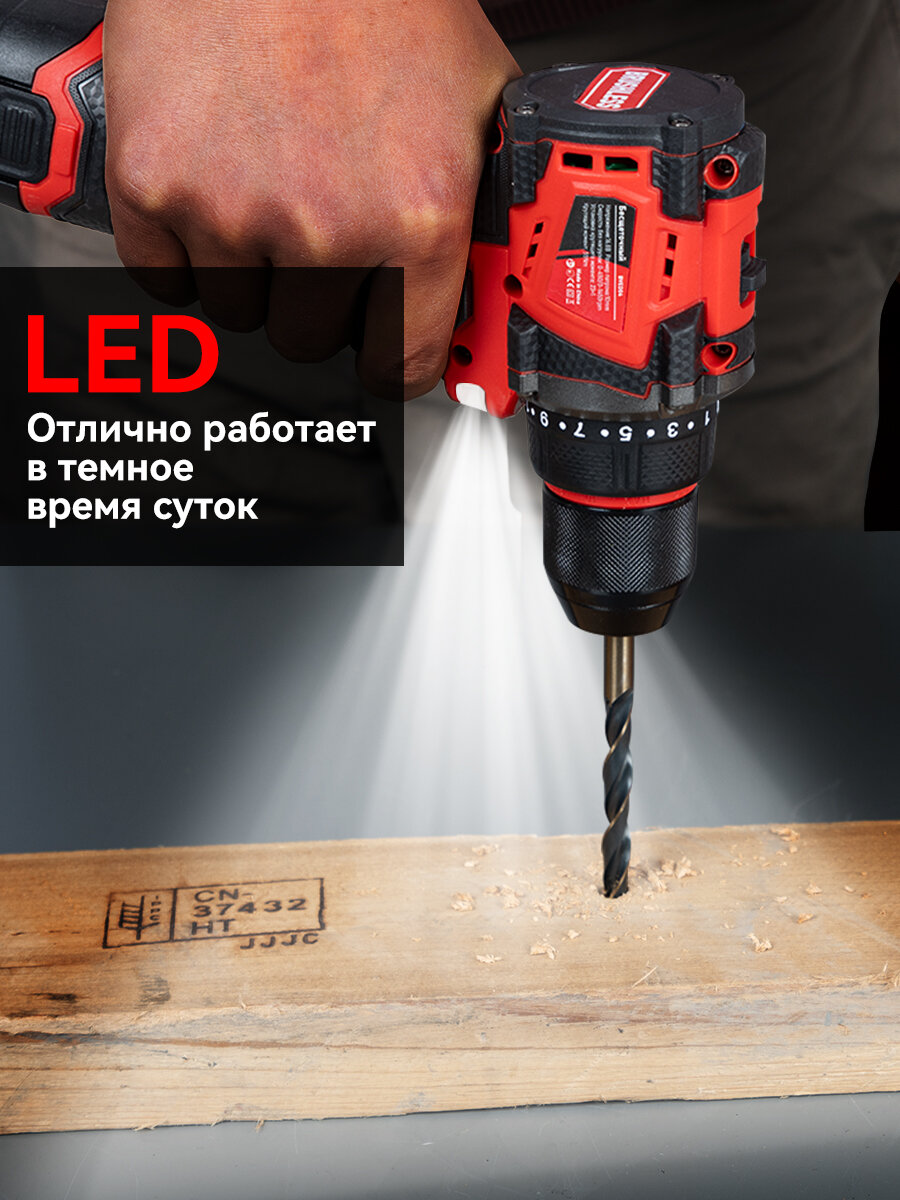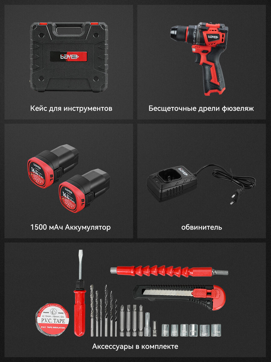 Шуруповерт аккумуляторный бесщеточный 55 Нм, дрель-шуруповерт Аккумуляторная 16.8В,2 АКБ,22 PCS предметов оснастки интересное: