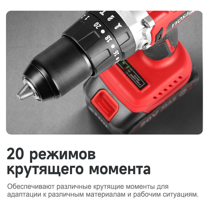 Красная аккумуляторная ударная дрель, бесщеточная, 20 В, 13 мм, 1 аккумулятор 4,0 А·ч интересное: