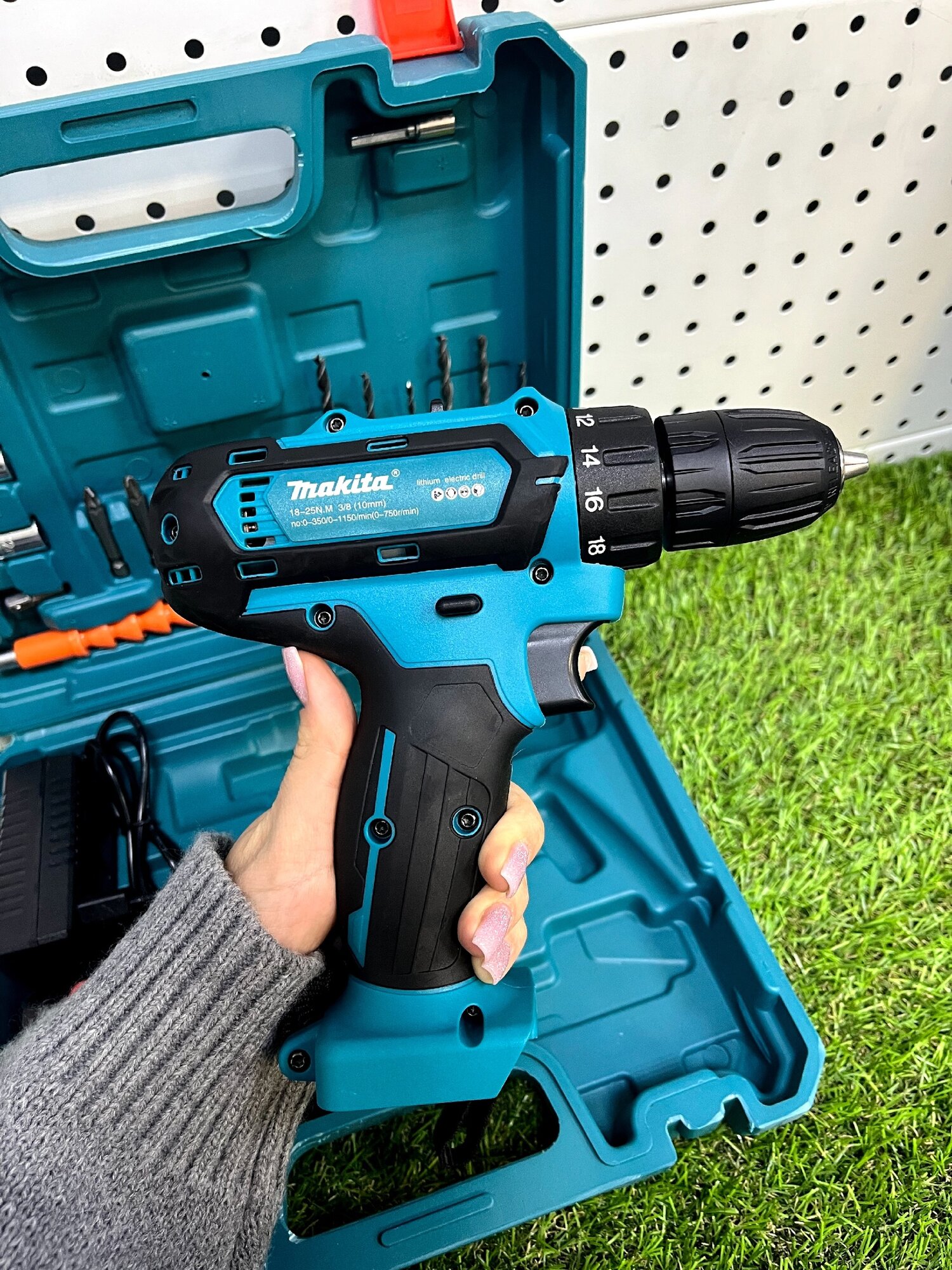 Шуруповёрт с набором бит и головок , металлический патронон 13мм быстрозажимной . в кейсе