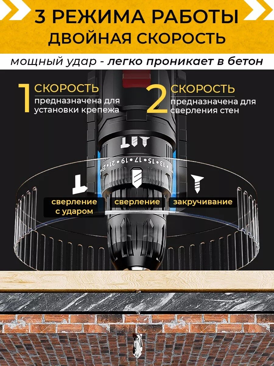 Дрель-шуруповёрт 18v АКБ с индикацией, ударный, быстрозажимной патрон. 42 Нм. Кейс набор оснастки интересное: