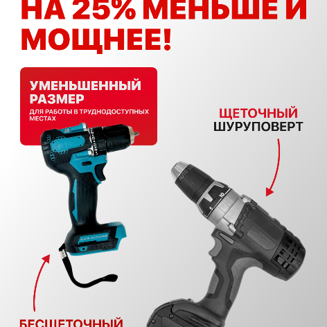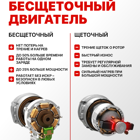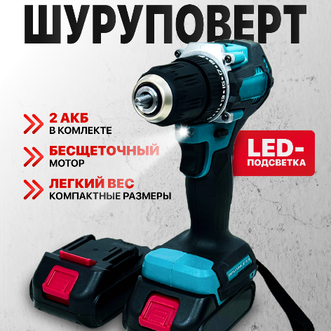 Шуруповерт-дрель Brushless Engine 21 В, бесщеточный двигатель, 2 акб 2Ач, прочный кейс интересное: