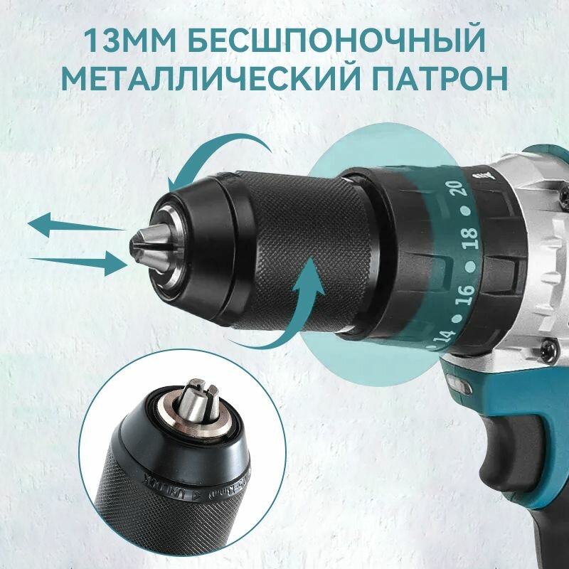 Дрель-шуруповерт, 13-мм бесщеточный двигатель, 18 В, 2 аккумулятора и 1 зарядное устройство интересное: