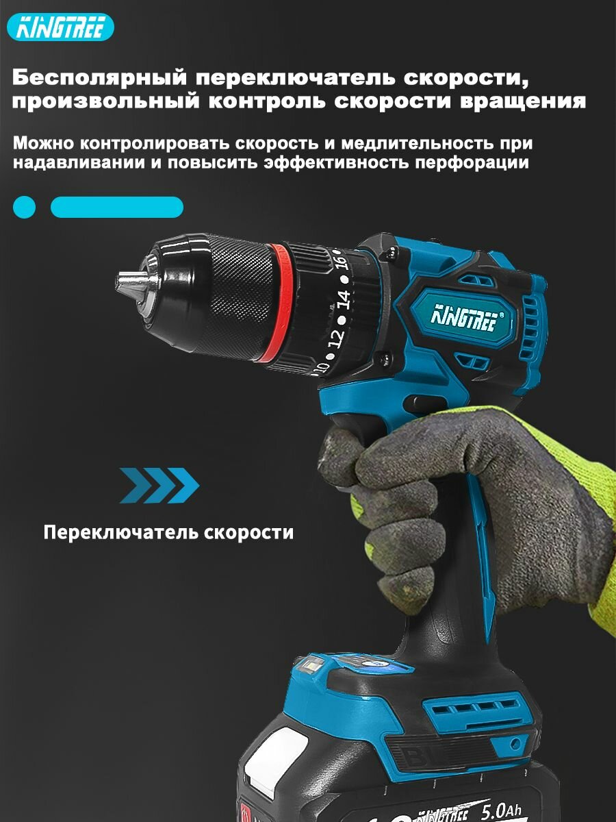 Бесщеточная электрическая ударная дрель Kingtree, 13 мм, подходит для домашней работы(6.0*1*батарея напряжением 21 В) интересное: