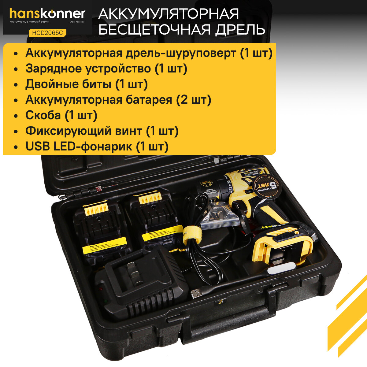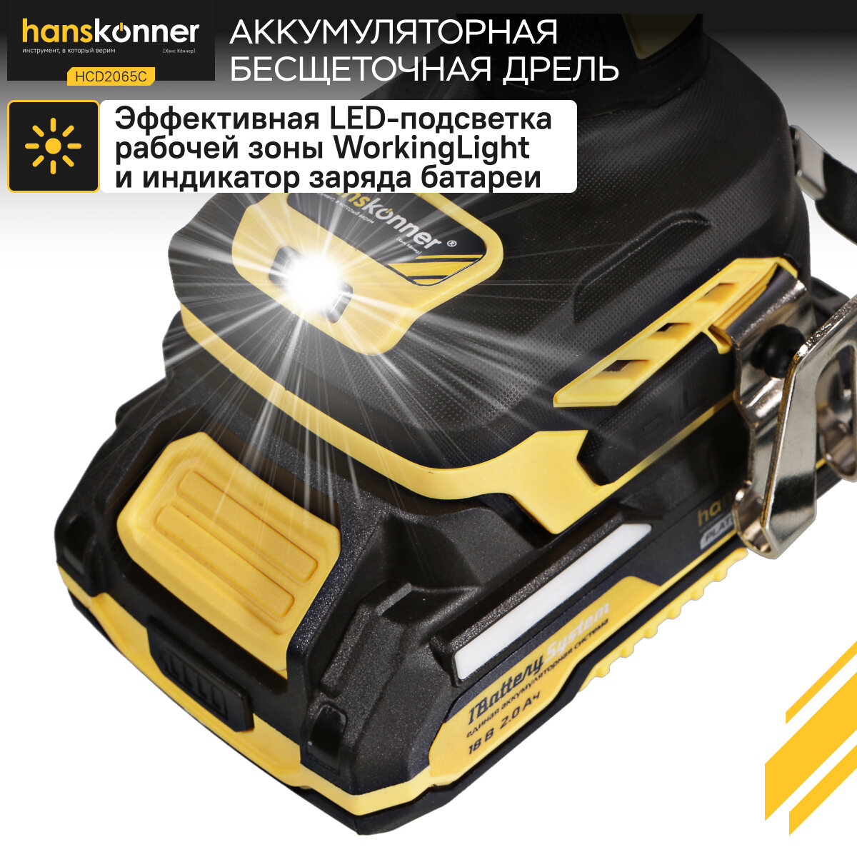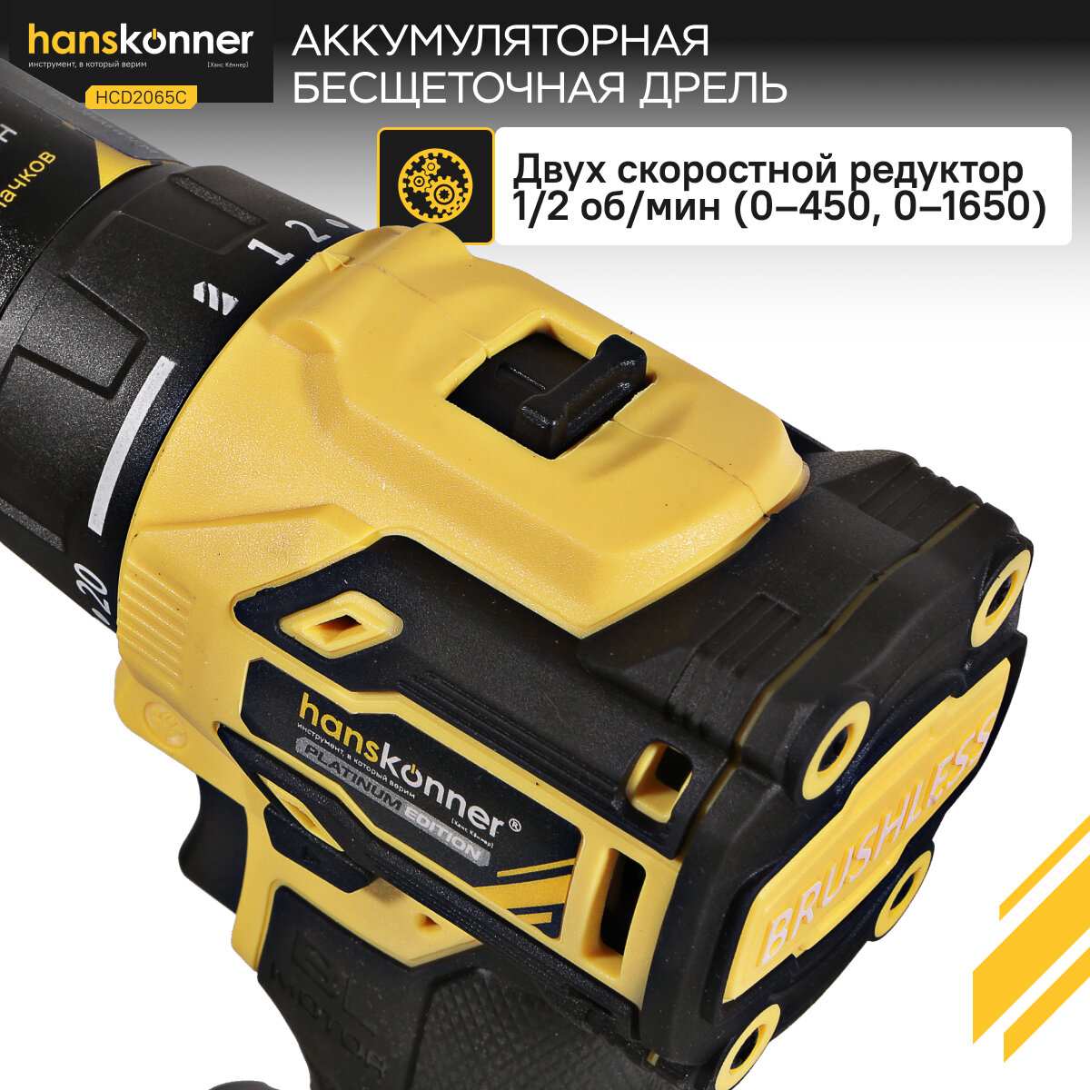 Шуруповерт аккумуляторный Hanskonner HCD2065C 18В, 1BatterySystem,60Нм, пл. патрон, 2х2Ач, кейс, бесщеточный интересное: