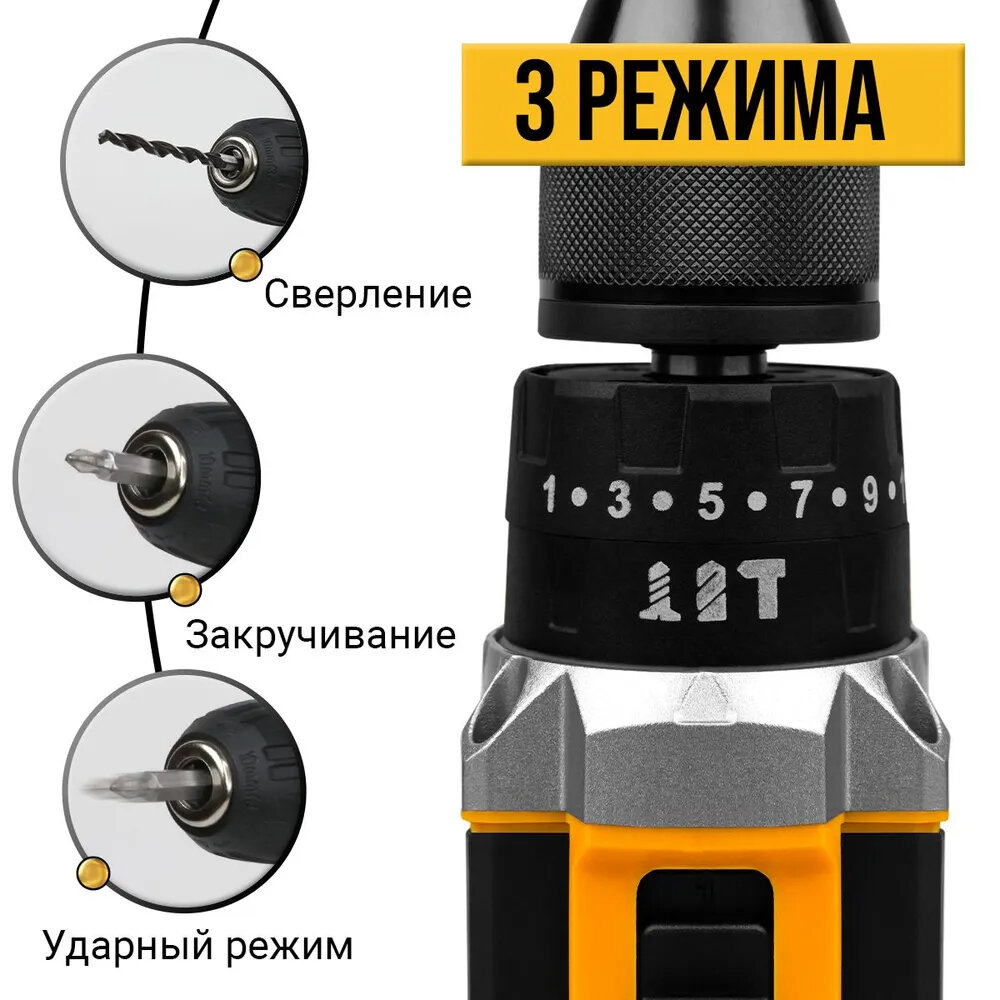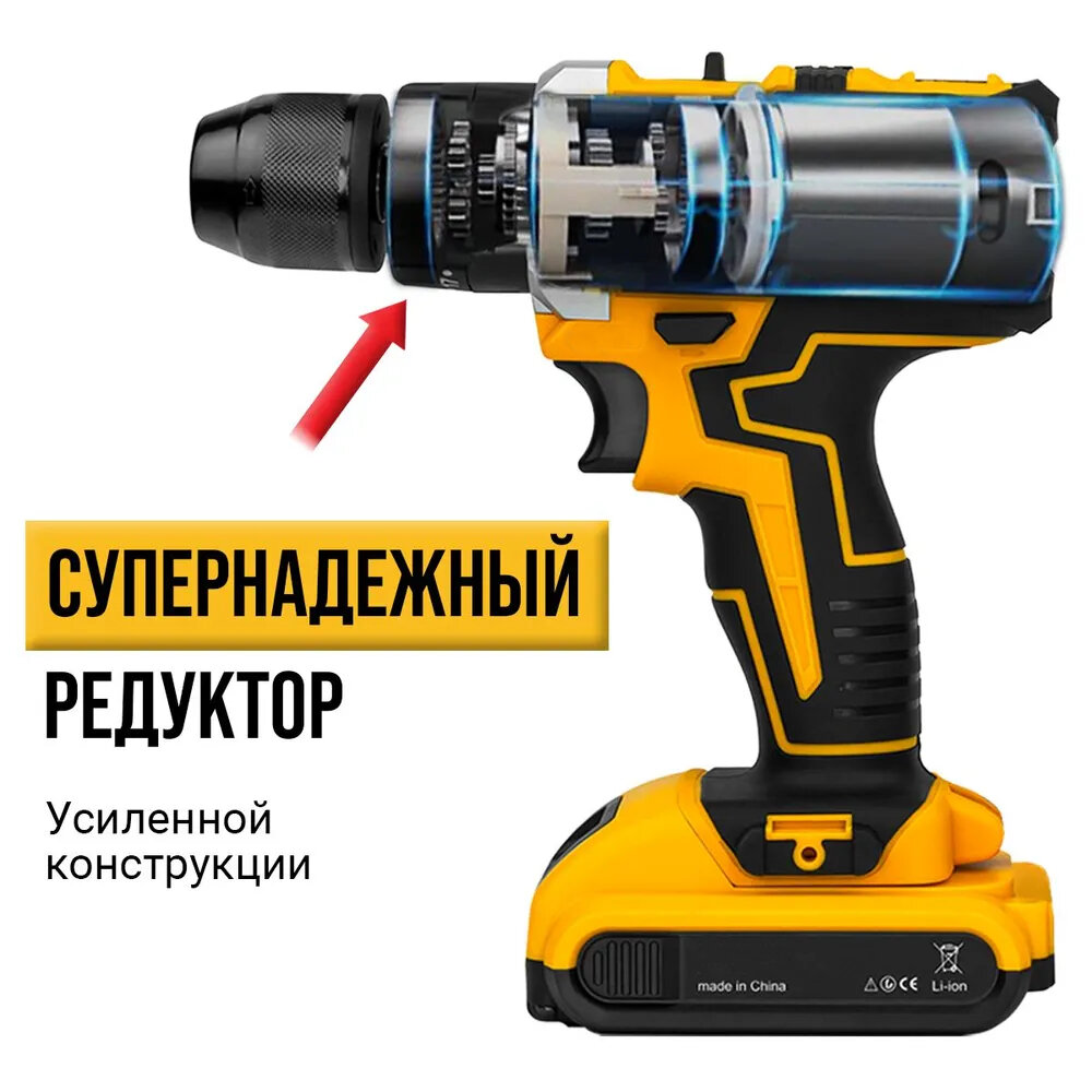 Дрель-шуруповерт аккумуляторный, 21 В, 2 АКБ, кейс, Желтый (комплект, набор инструментов) интересное: