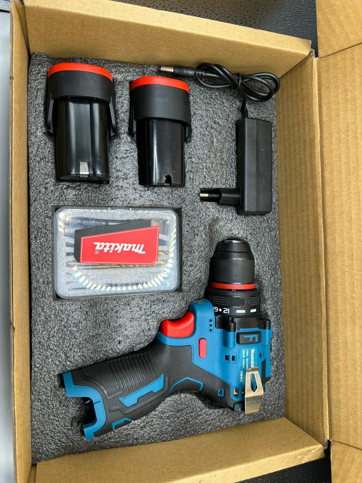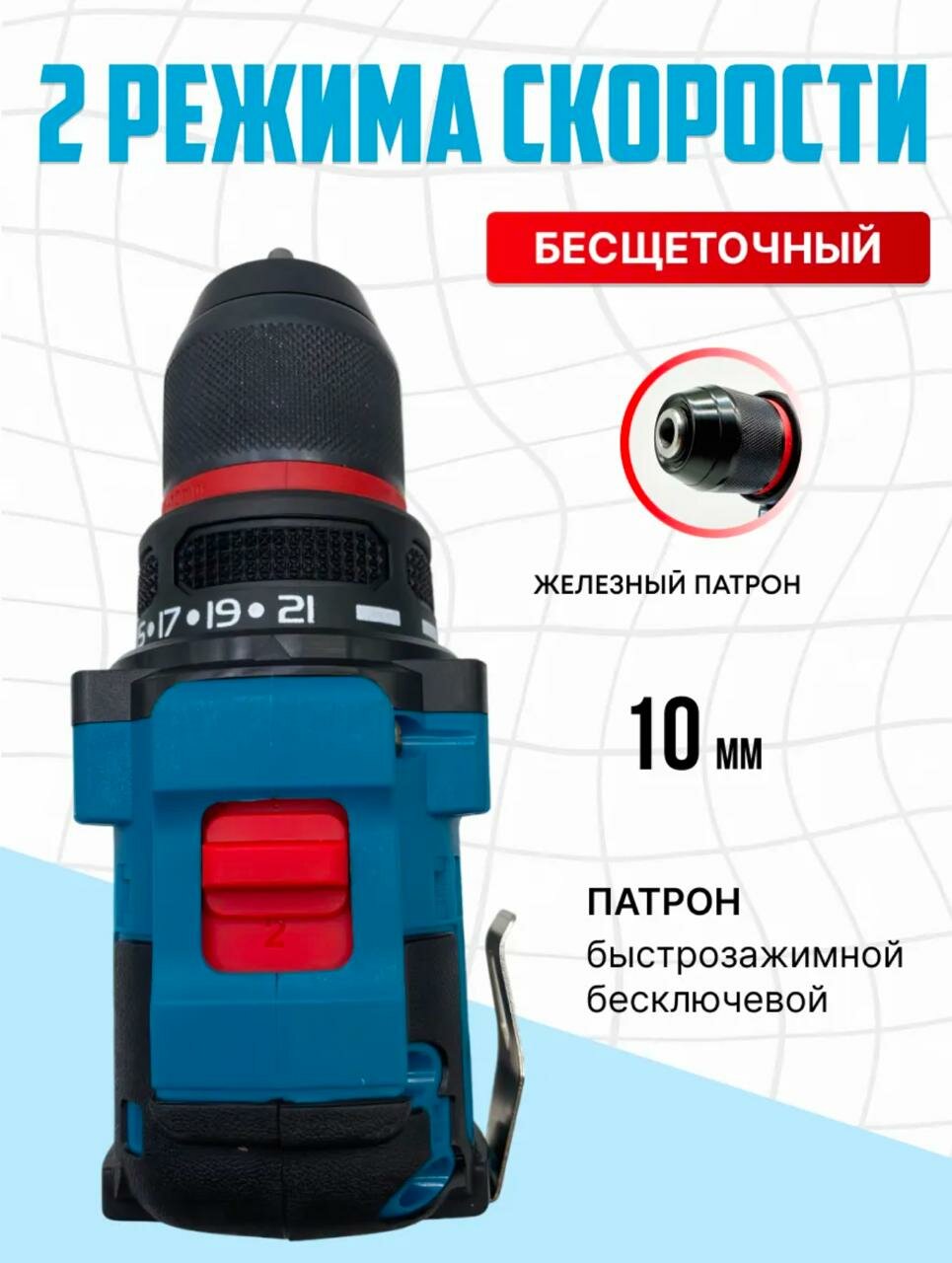 Дрель-шуруповёрт 21V, Шуруповерт аккумуляторный, бесщёточный двигатель, с кейсом и двумя аккумуляторами