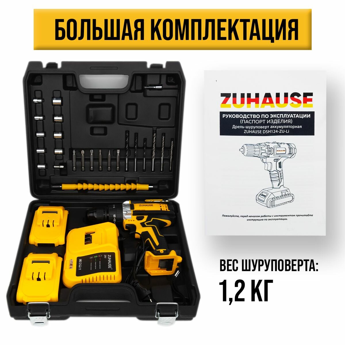 Купить Шуруповерт аккумуляторный с функцией дрели, ударный режим, 24v, 2 АКБ, в кейсе с оснасткой