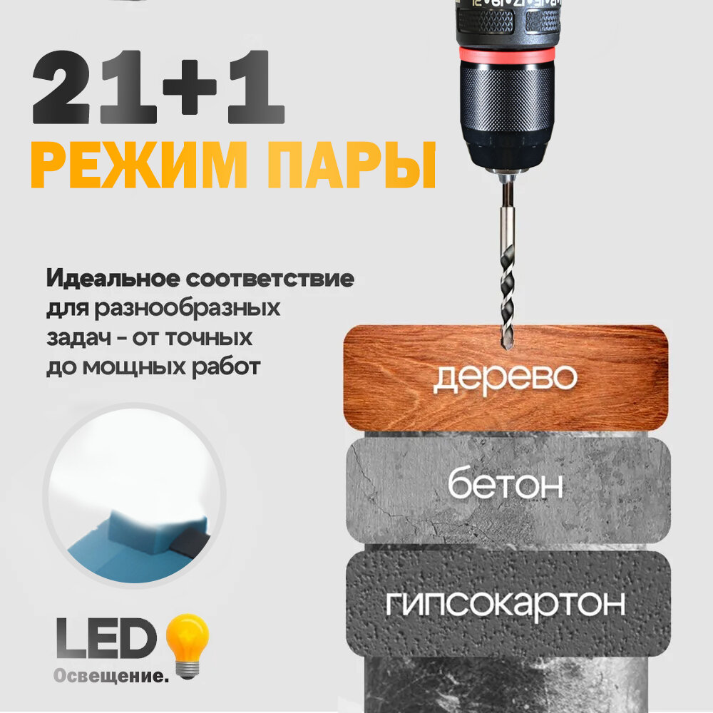 Аккумуляторная дрель Kingtree, 100 Нм, 4800 об/мин (1 с аккумулятором и 1 зарядным устройством)