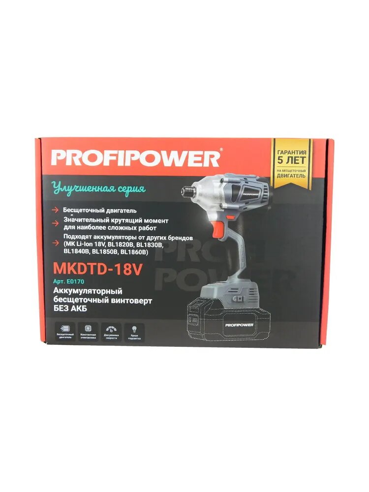 Купить Винтоверт аккумуляторный ProfiPower беcщеточный импульсный MKDTD-18V, 220Нм (без АКБ, без З/У)