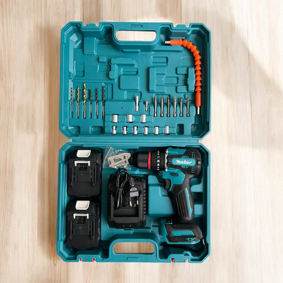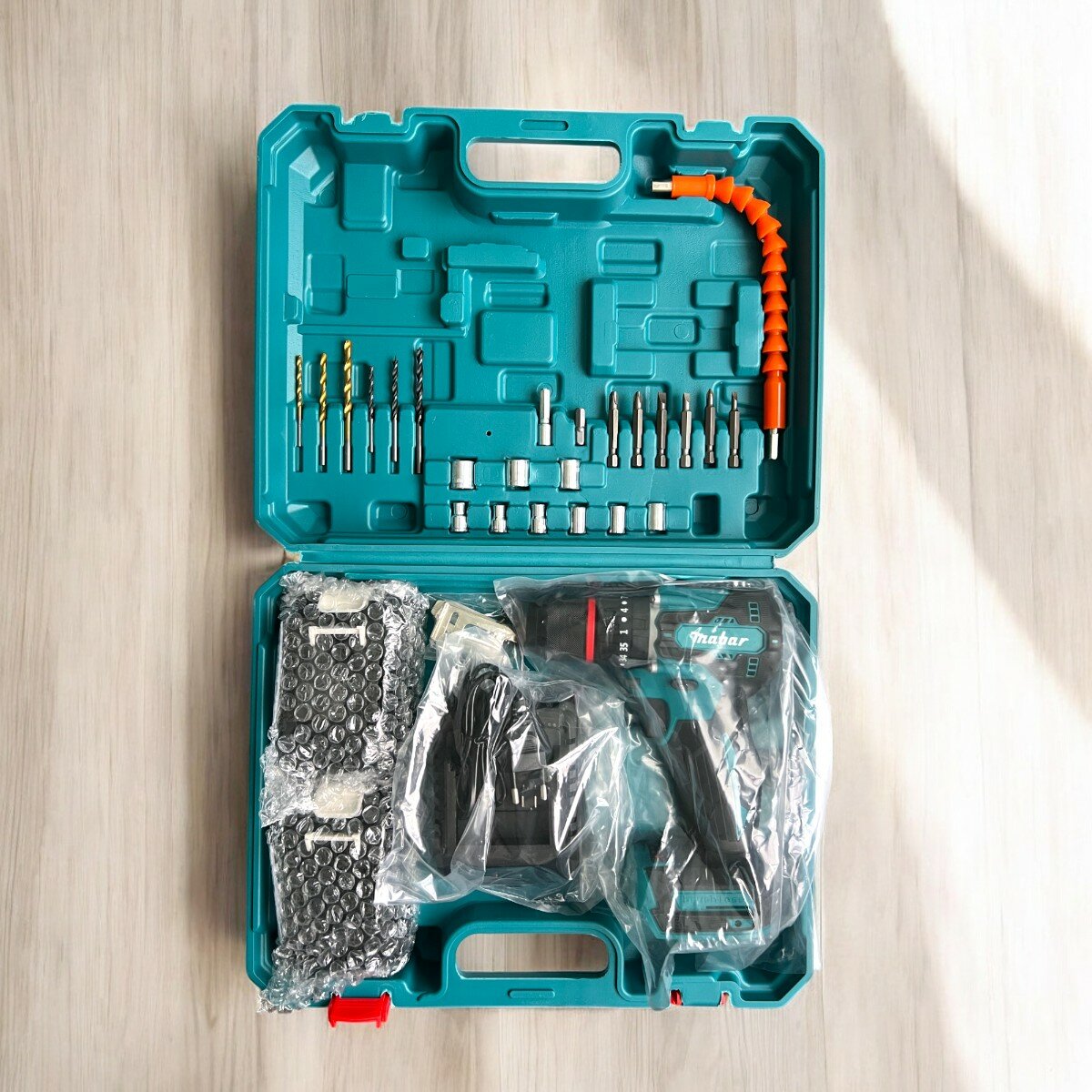 Дрель-шуруповерт 24V аккумуляторная, с набором бит и свёрл, 2 АКБ в кейсе интересное: