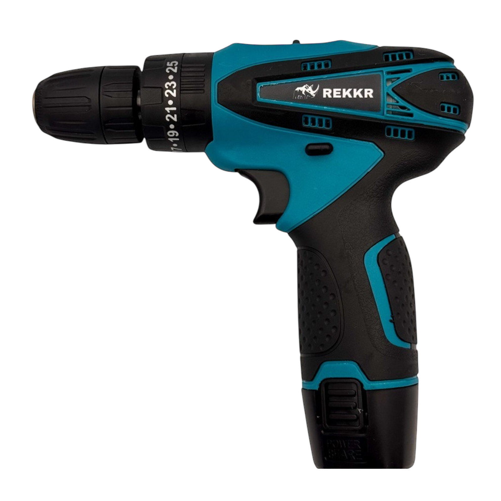 Купить Дрель-шуруповерт аккумуляторный REKKR CD030BL, 30Нм, 2 аккумулятора 12В 2.0Ач, патрон 10мм, кейс с набором, зарядка