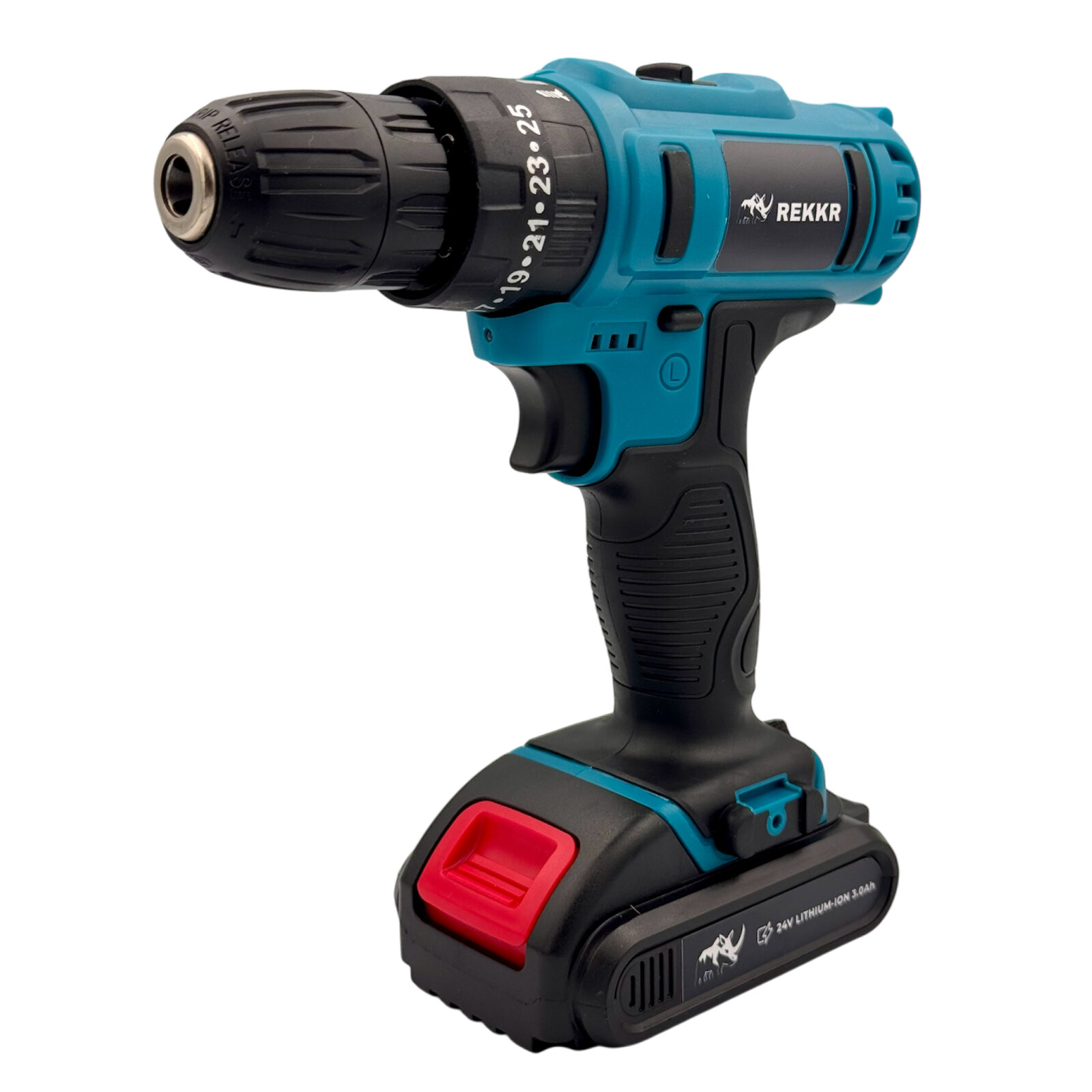 Дрель-шуруповерт бесщеточный REKKR CDN065BL, 65Нм, 2 аккумулятора 24В 3.0Ач, патрон 10мм, кейс с набором, зарядка