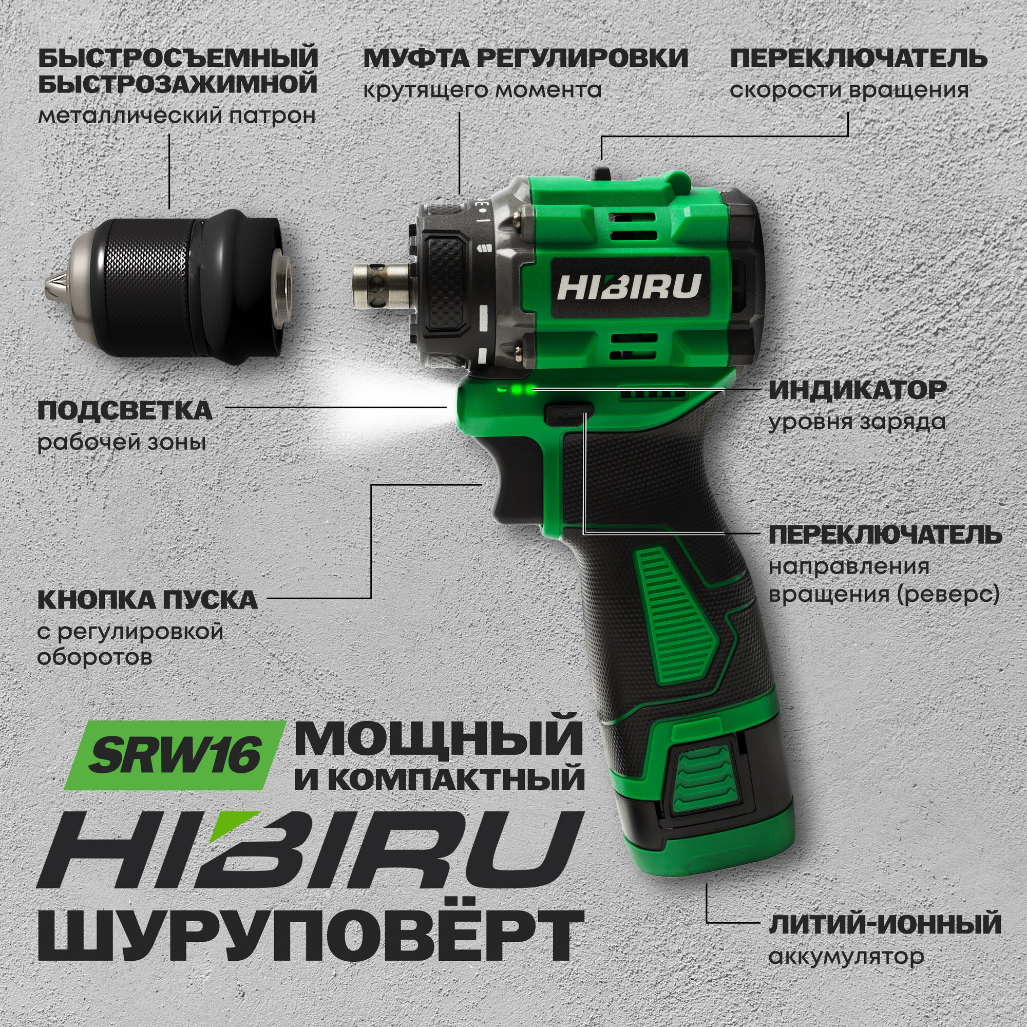 Бесщеточный аккумуляторный шуруповерт 16.8В 55Нм 2Ач / HIBIRU, блокировка шпинделя, металлический патрон, кейс, оснастка интересное: