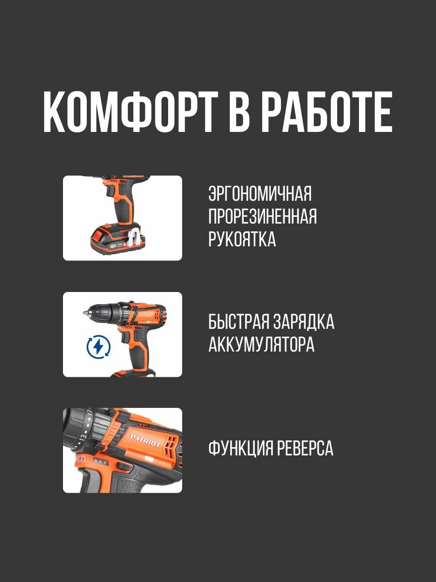 Аккумуляторная дрель-шуруповерт PATRIOT BR 181UES, 2АКБ, ЗУ, кейс интересное: