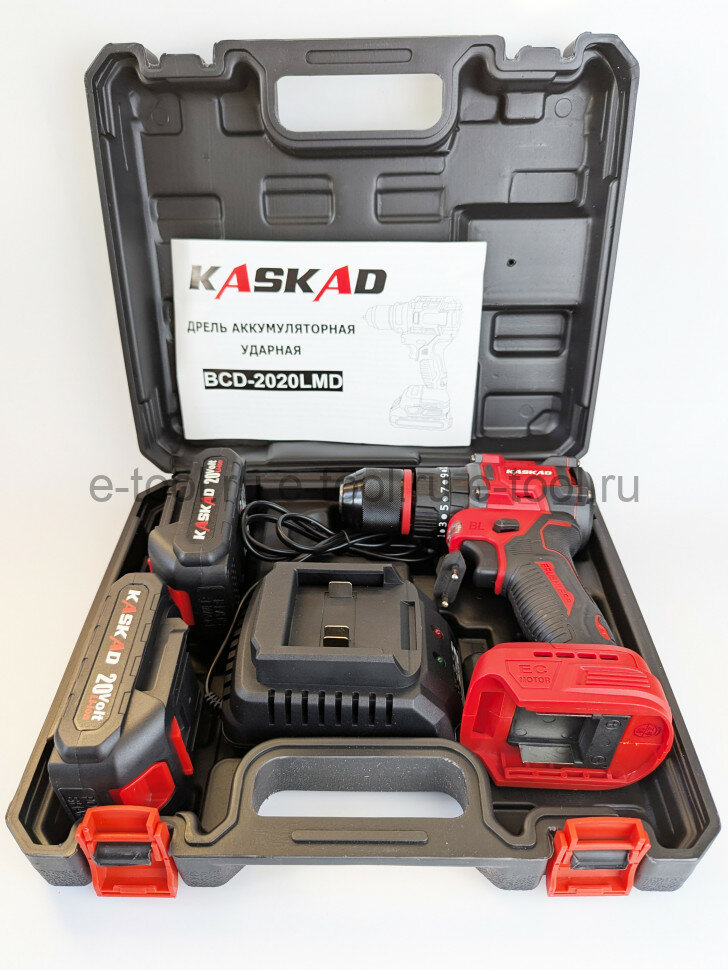 Купить Дрель-шуруповерт ударная KASKAD BCD-2020LMD (бесщеточный дв, 20В, 2 акб 2 Ач, кейс, авто ЗУ)
