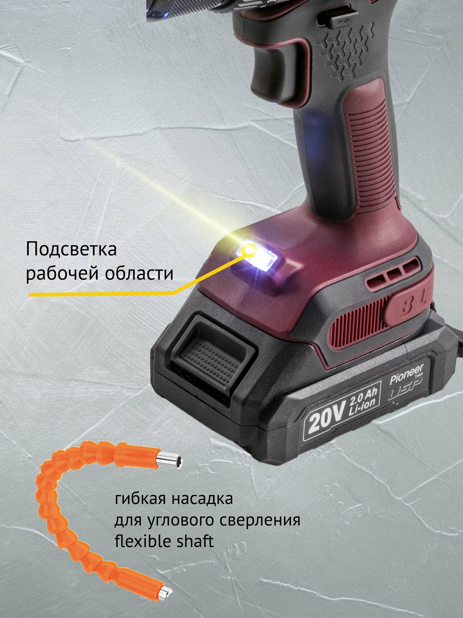 Ударная дрель шуруповерт аккумуляторная Pioneer CID-M2001CB USP интересное: