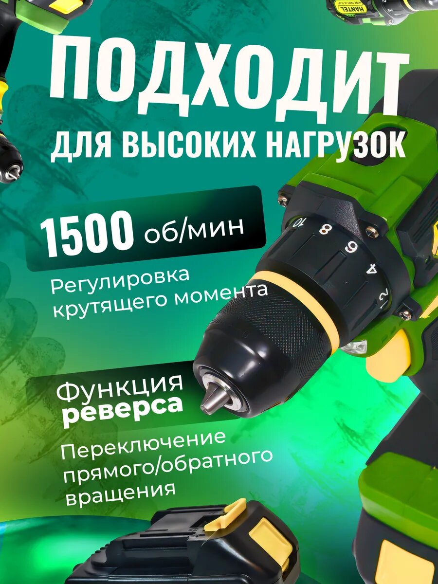 Аккумуляторная дрель - шуруповерт HANTEL LI-12S, набор оснастки, 2 АКБ на 12В, ЗУ и кейс + набор оснастки. Быстрозажимной патрон 10мм, отличный подарок отцу, мужу, другу