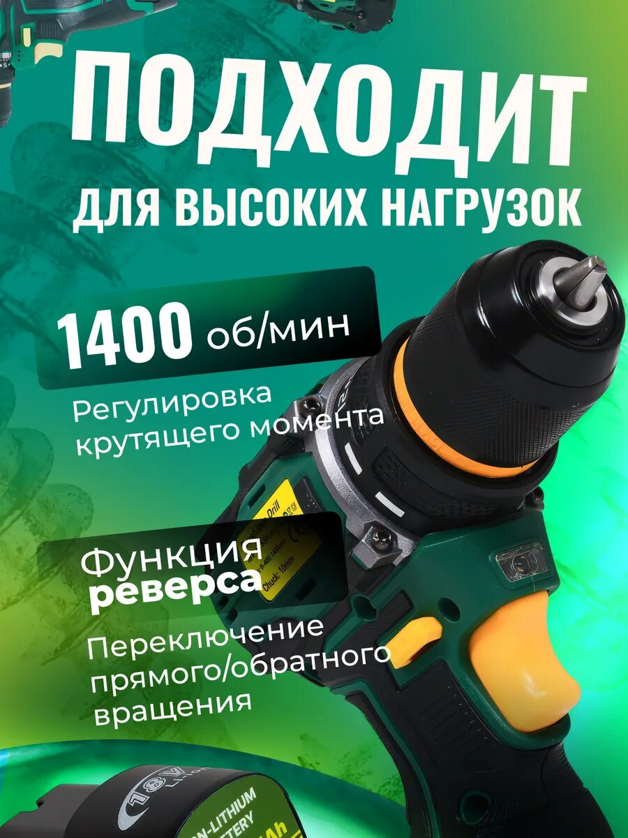 Аккумуляторная дрель - шуруповерт HANTEL LI-12S, набор оснастки, 2 АКБ на 12В, ЗУ и кейс + набор оснастки. Быстрозажимной патрон 10мм, отличный подарок отцу, мужу, другу