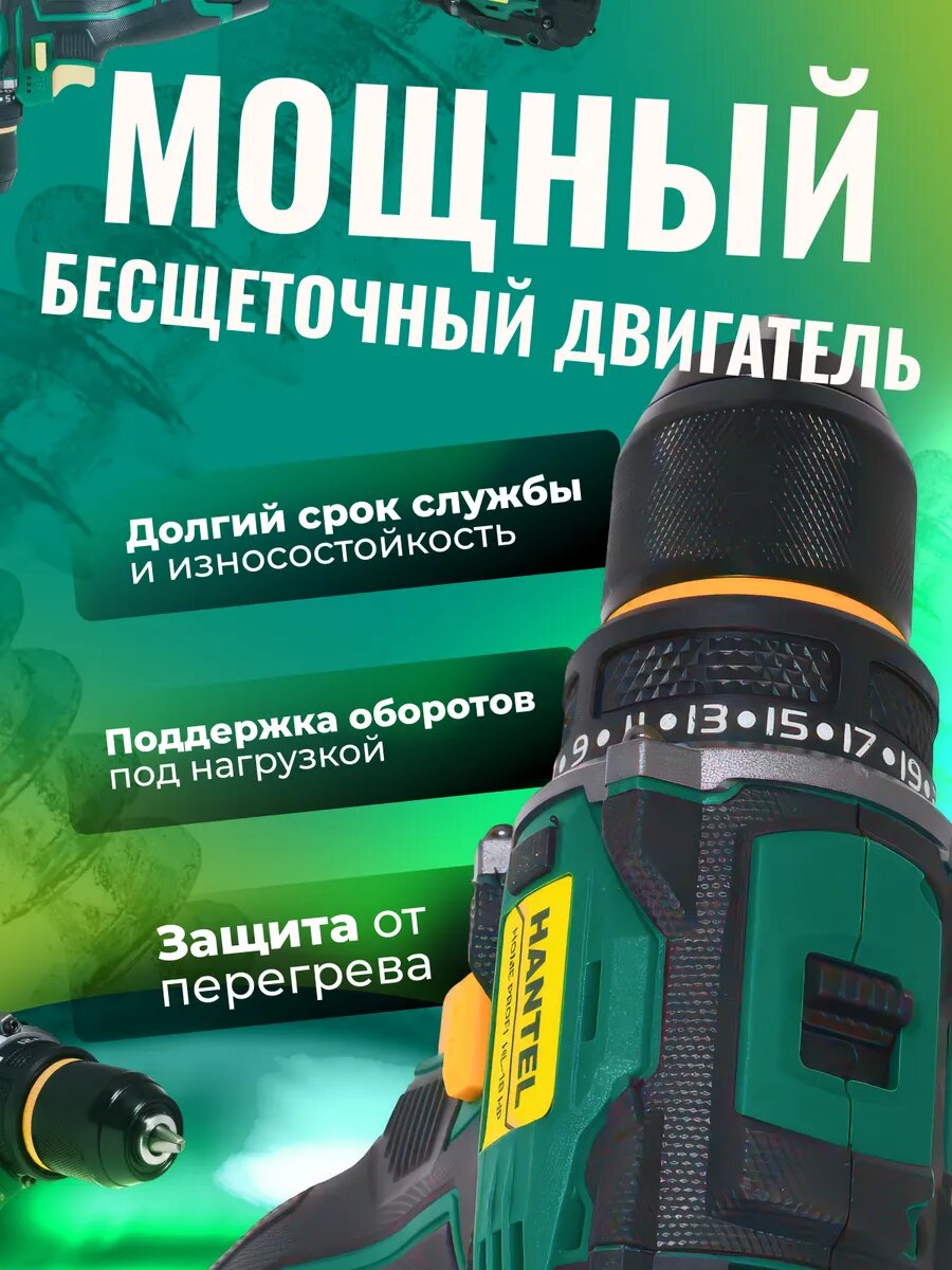 Шуруповерт аккумуляторный бесщеточный HANTEL HL-18 HP интересное: