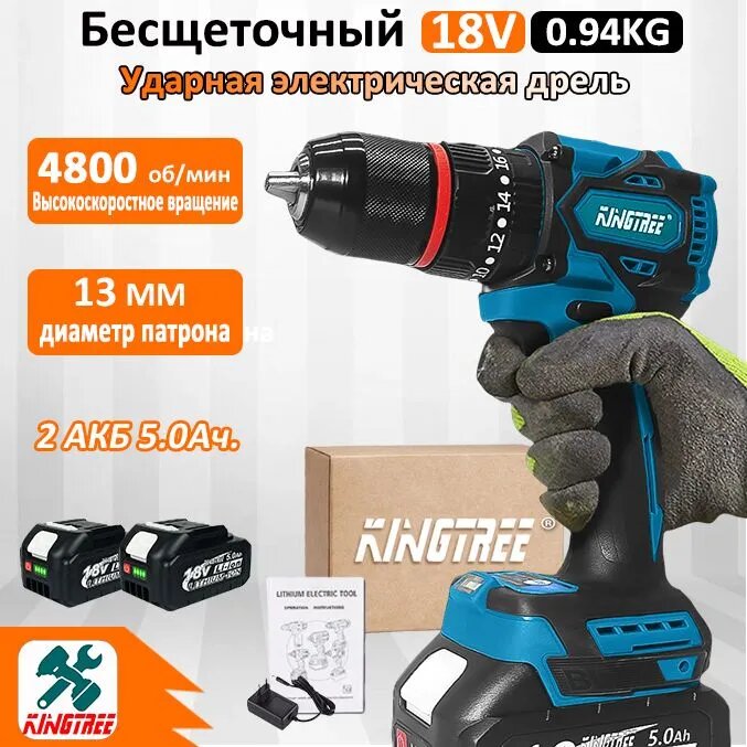 Купить Шуруповёрт KINGTREE-100DZ, бесщёточный, LiIon аккумулятор, 1200Вт,2 АКБ
