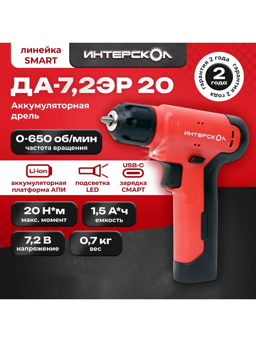 Шуруповерт Интерскол Smart ДА-7,2 ЭР, 650 об. мин, 1,5 Ач, 874.3.0.00 интересное: