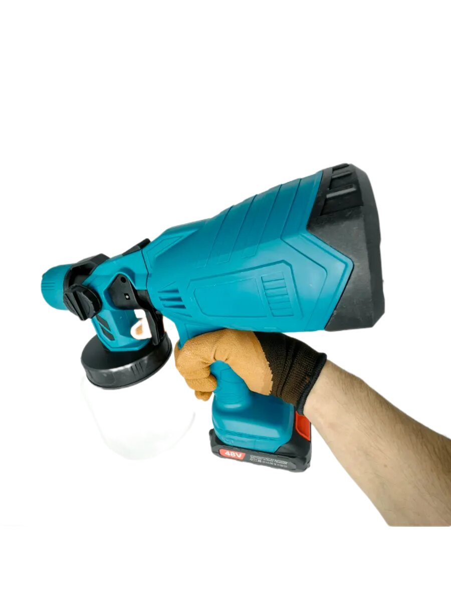 Краскопульт, аккумуляторный краскопульт, краскопульт для покраски автомобиля, стен, потолков, универсальный, 1000 мл, 48v, синий интересное: