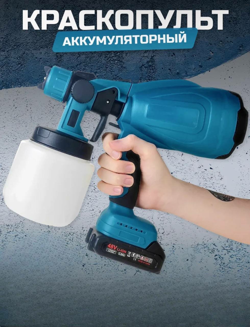 Краскопульт аккумуляторный 48 Вольт, 2 аккумулятора в комплекте, бак на 800 мл, поставляется в картонной коробке интересное: