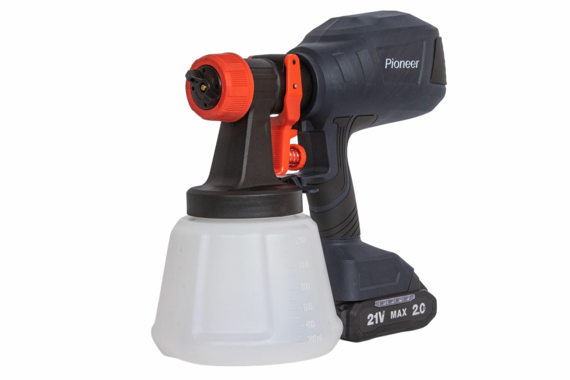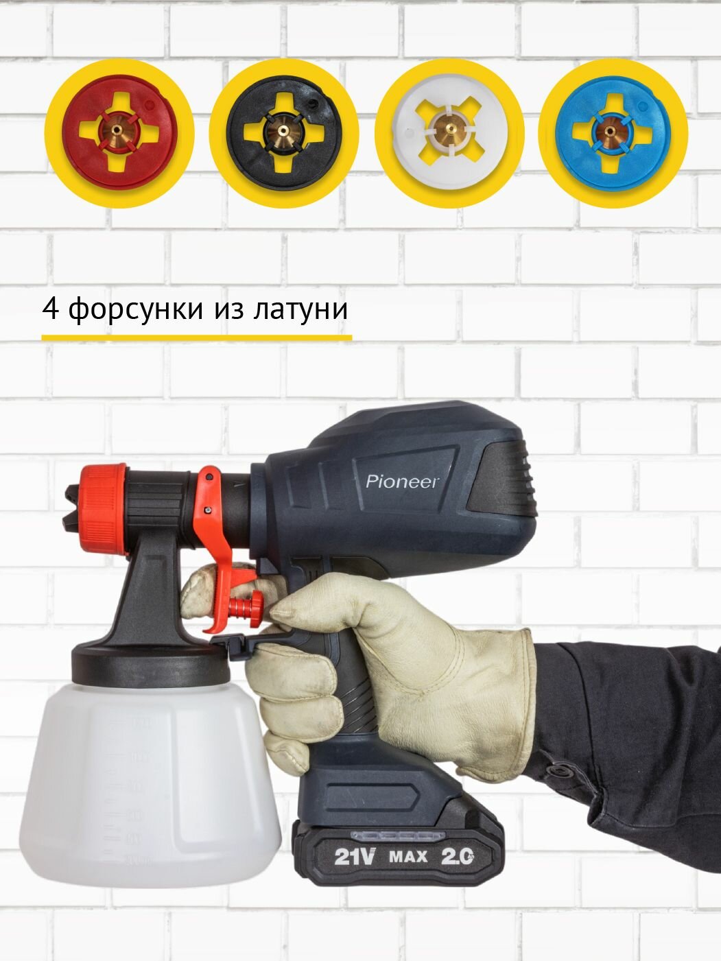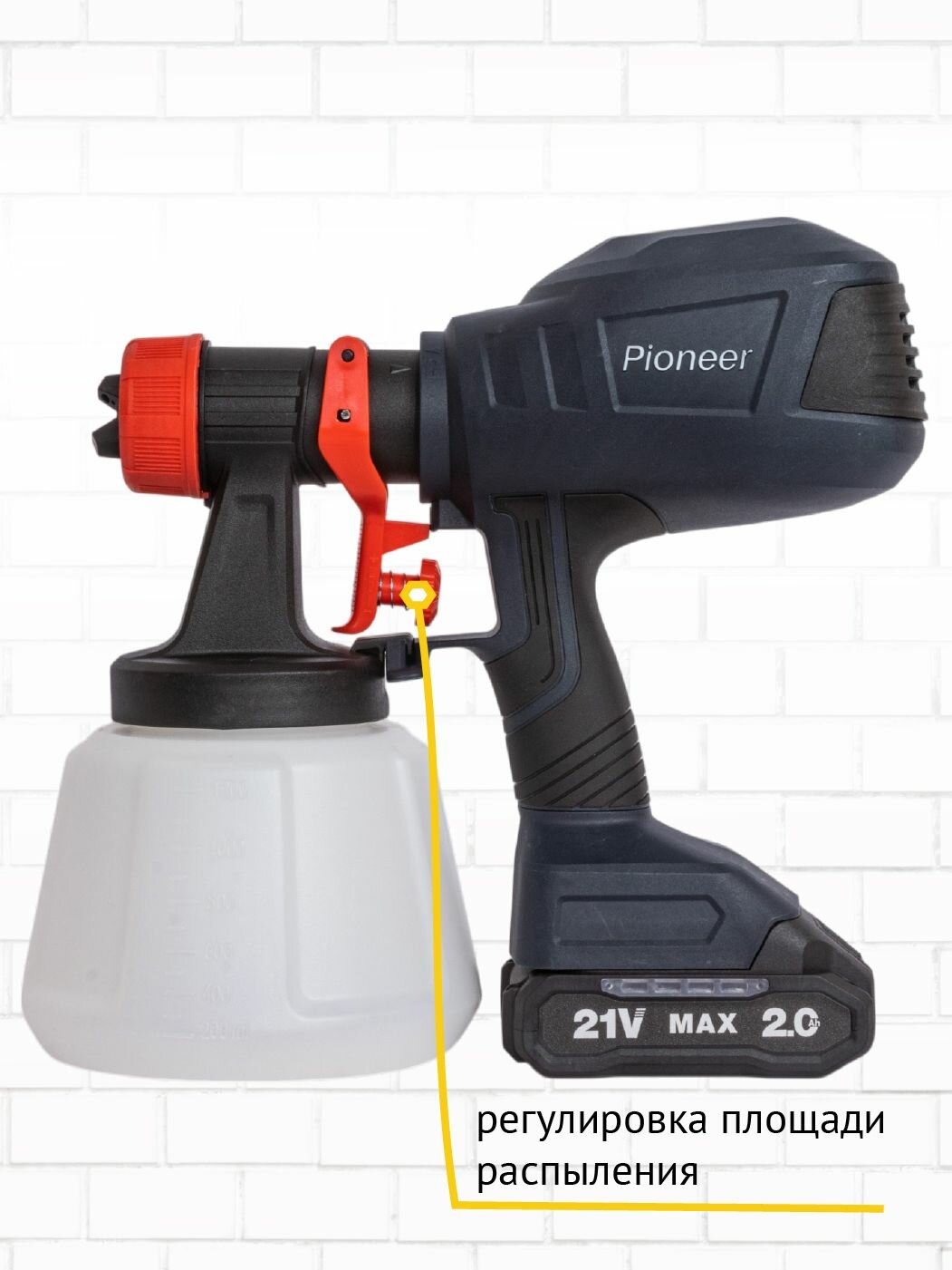 Краскопульт аккумуляторный Pioneer BSG-2020-01, регулировка распыления, 3 струи, 800 мл/мин, 120 DIN/сек, емкость 1.2л интересное:
