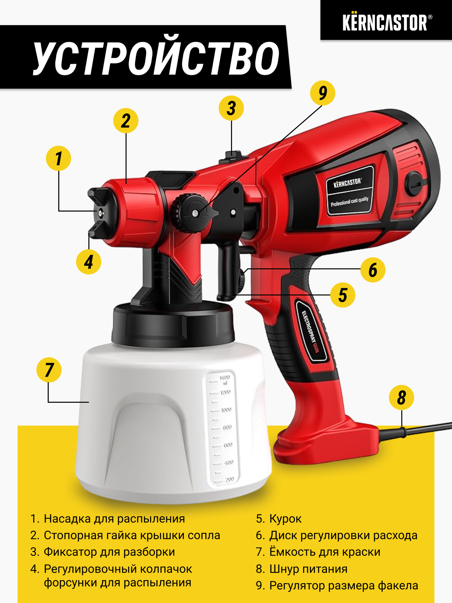 Краскопульт электрический сетевой KERNCASTOR для покраски, пульверизатор для краски интересное: