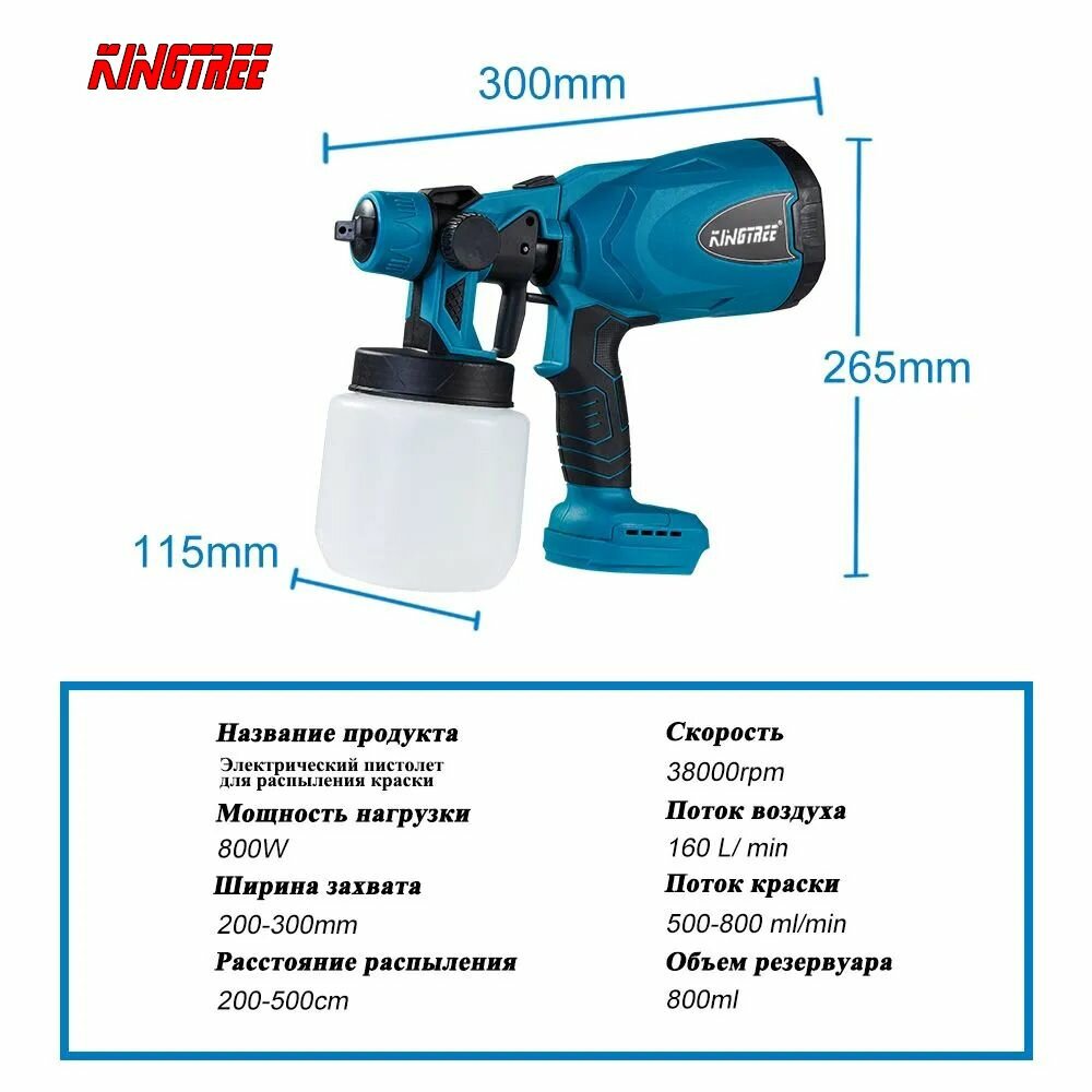 Kingtree электрический краскопульт объемом 800 мл, с 1 аккумуляторами и зарядным устройством интересное: