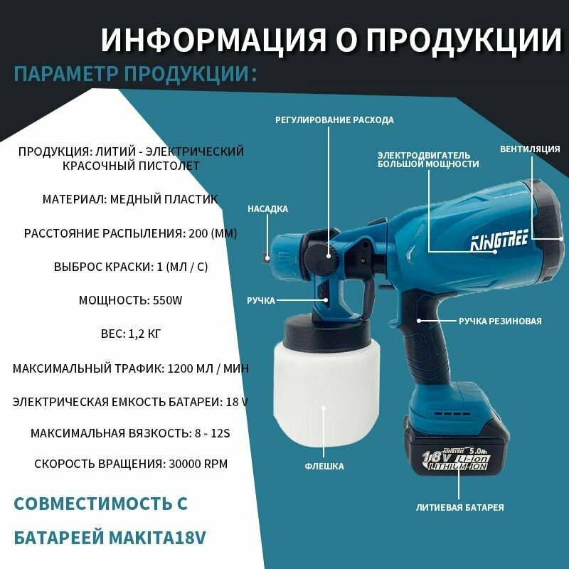 Kingtree Tool Электрический пистолет-распылитель 800 мл, простая регулировка распыления и очистки,(Нет батареи) интересное: