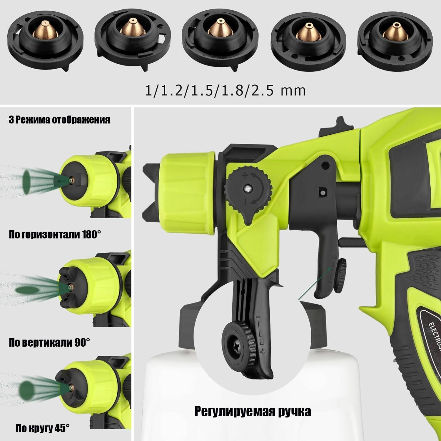 Электрический краскопульт , С 5 сопла, Мощность-800 Вт , Объем бачка-1400 МЛ,1200 мл/мин интересное: