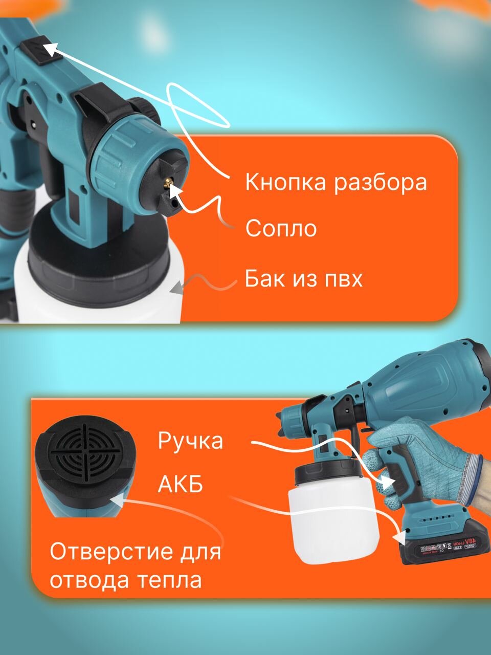 Электрический пистолет распылитель краски / Краскопульт 2 аккумулятора 48 Вт интересное: