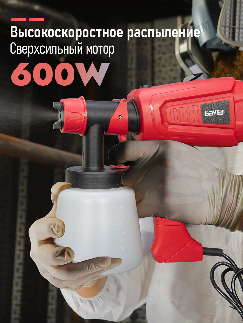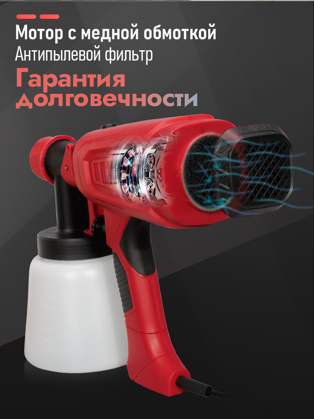 Краскопульт электрический, 600 Вт, Скорость потока 800 мл/мин, пистолет распылитель HVLP емкостью 800 л интересное:
