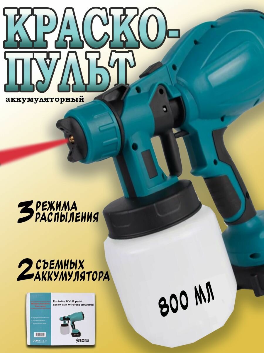 Краскопульт электрический, Пистолет распылитель краски 2 аккумулятора 48 Вт интересное: