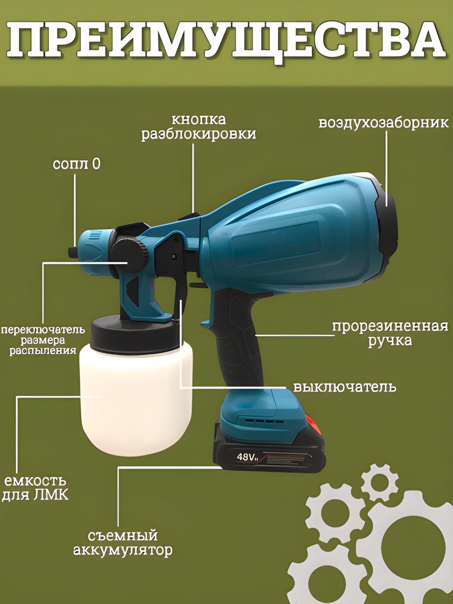 Краскопульт аккумуляторный, беспроводной электрический опрыскиватель, 1000 мл, садовый опрыскиватель интересное: