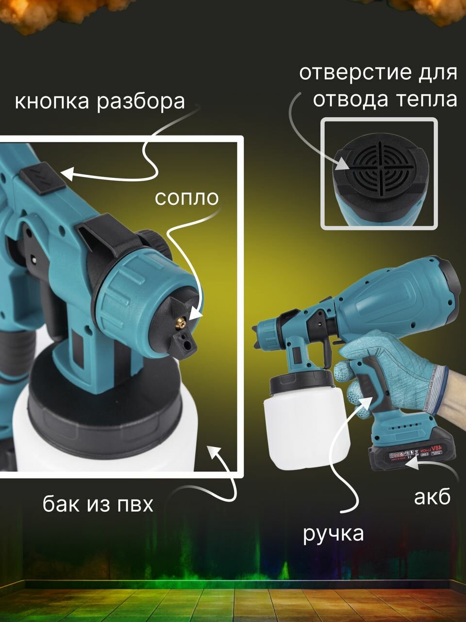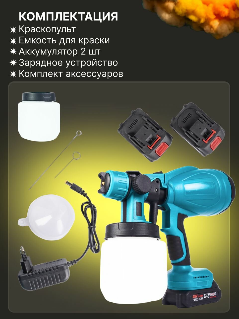 Краскопульт электрический / Пистолет распылитель краски 2 аккумулятора 48 Вт интересное: