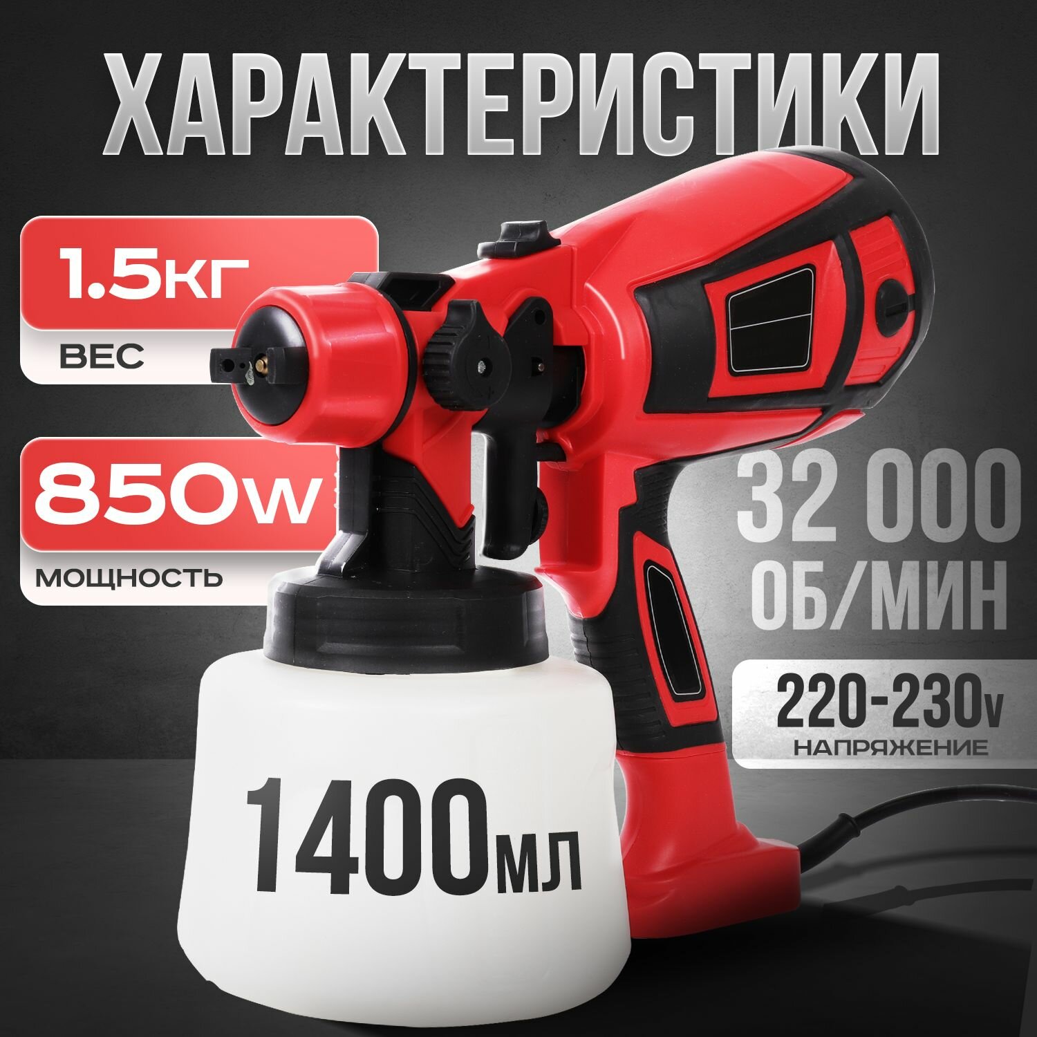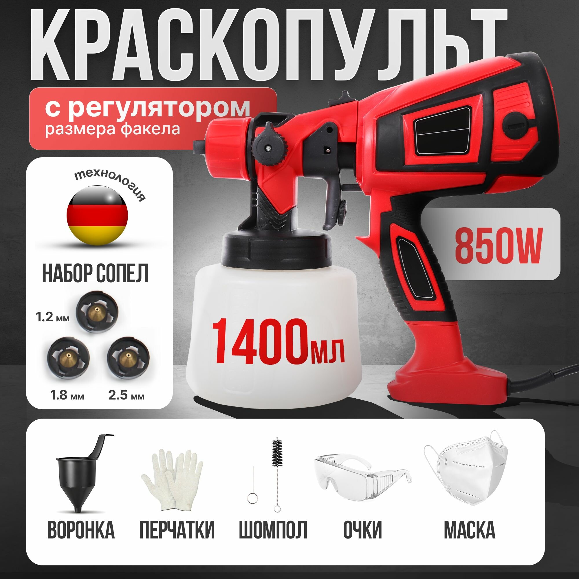 Краскопульт электрический 850 Вт строительный, универсальный, быстросъемный, ручной для покраски, для ремонта интересное: