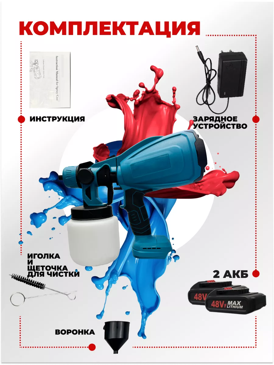 Краскопульт, аккумуляторный, 800ml, мощность 80W, вязкость до 90, 2 АКБ интересное: